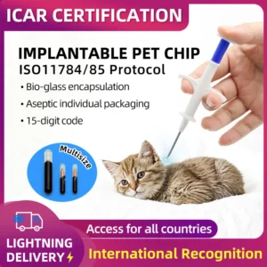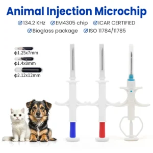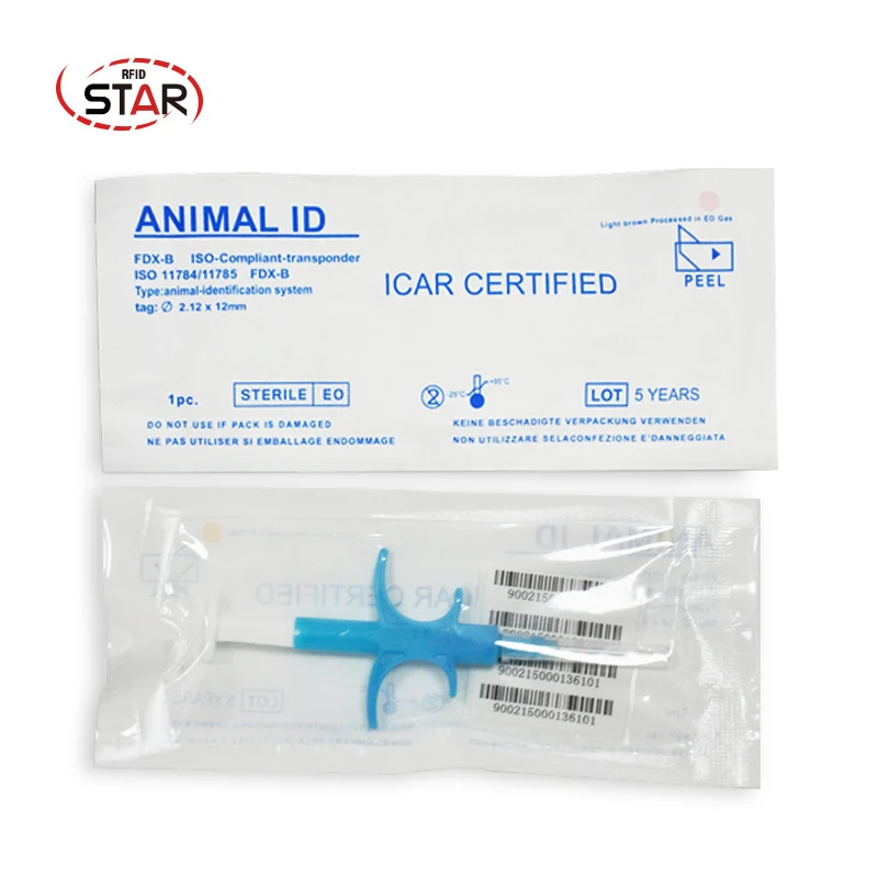 100pcs 1.25*7/1.4*8/2*12mm bioglass animal microchip pet transponder for dog implants identification with syringe