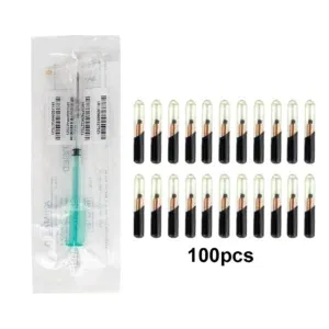 Be the first to review “100pcs 2.12X12/1.4X8mm/1.25x7mm microchip+syring dog cat pic cow animal chip EM4305 134.2khz”