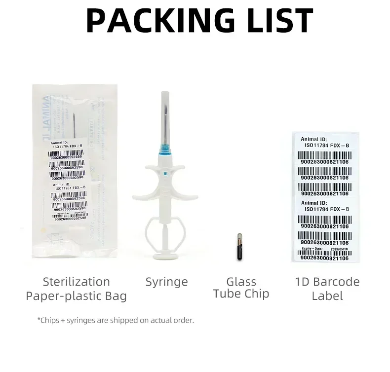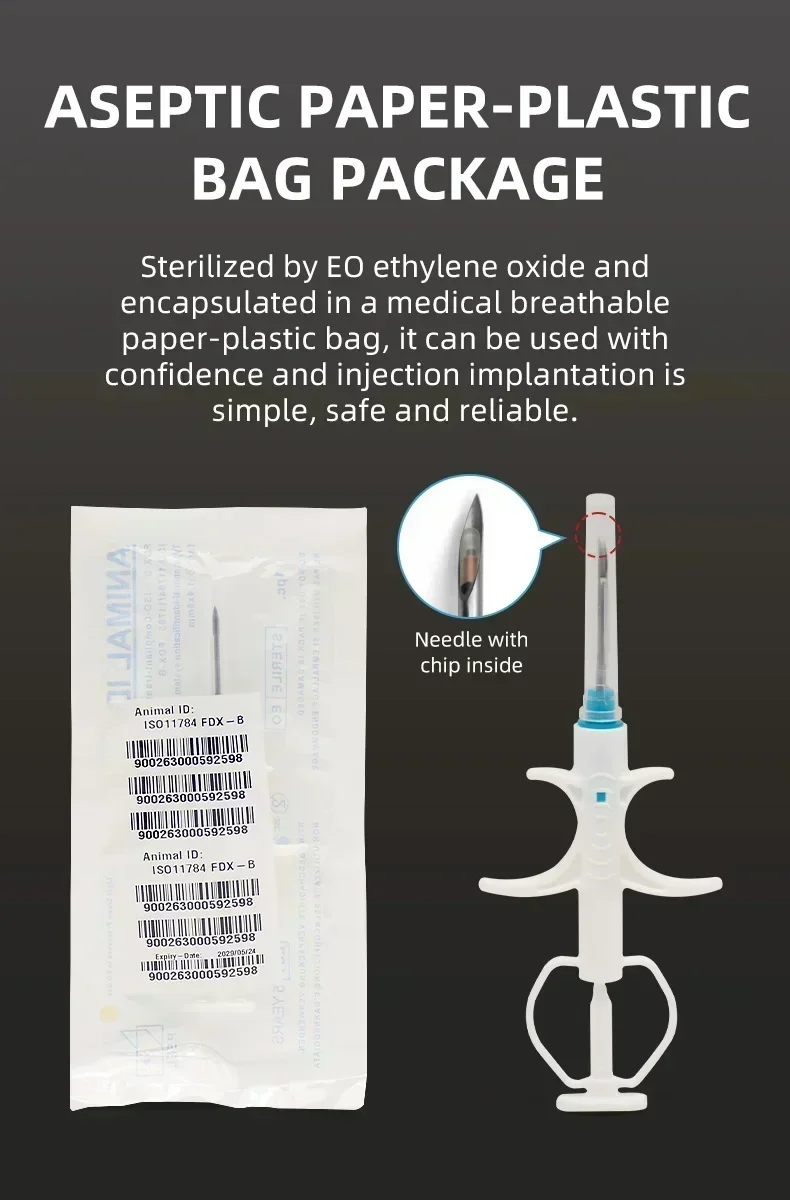 100pcs of Pet ID ICAR Tags High Performance EM4305 Compatible Microchip Syringes FDX-B ICAR Animal ID Chip for Dogs and Cats