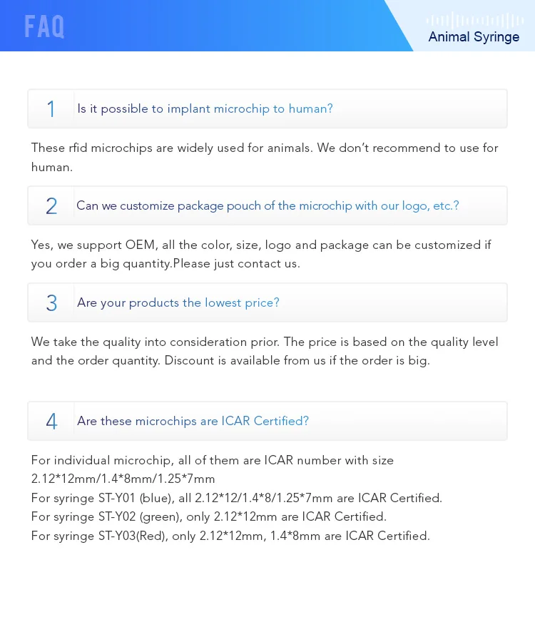 1pc 2.12*12 mm NFC Animal Microchip Syringe 13.56MHz ISO14443A Disposable rfid pet syringe, microchips for pet animal identity