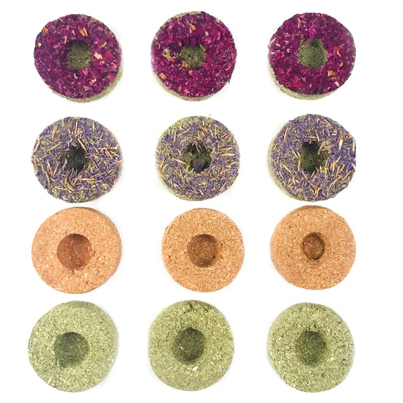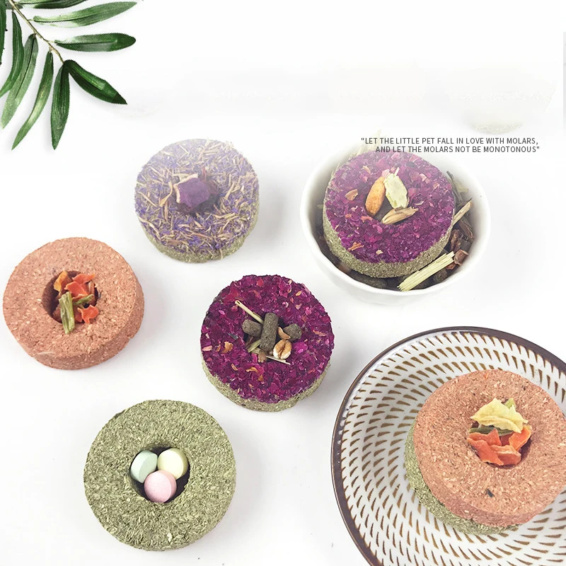 The rabbit chew toys are Made from natural grass powder, carrot powder, forget me not and rose,All materials are natural.