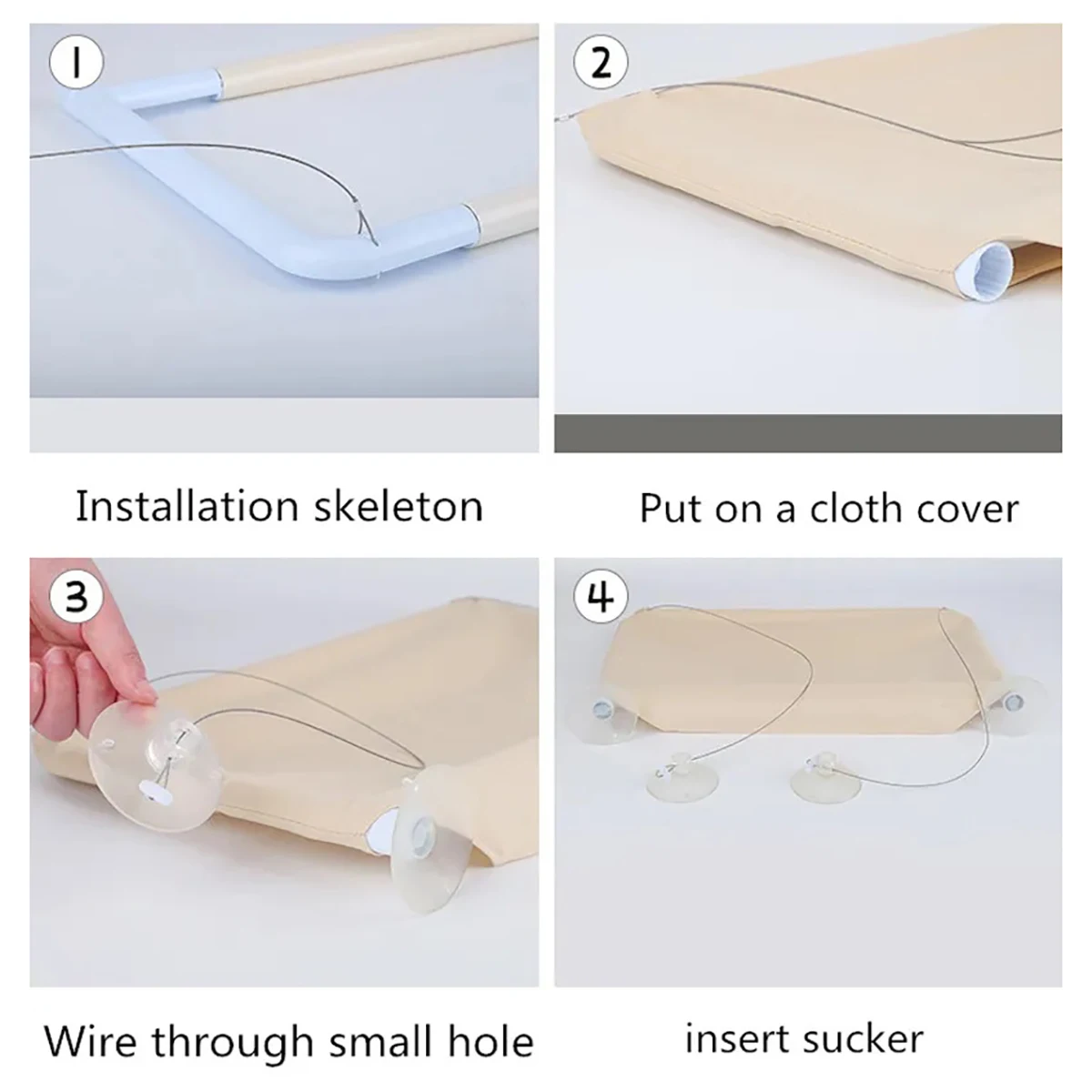 The bed is designed to be attached directly to the window with four suction cups (no hardware or tools required).