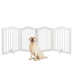 - 4-Panel Pet Gate: Constructed from 0.7″ thickened MDF boards composing a durable wooden frame, this 4-panel pet fence stands 27.6 inches tall, ensuring durability and security for your pets. Also, its width can expand to a maximum of 80 inches, adapting to various shapes based on user needs