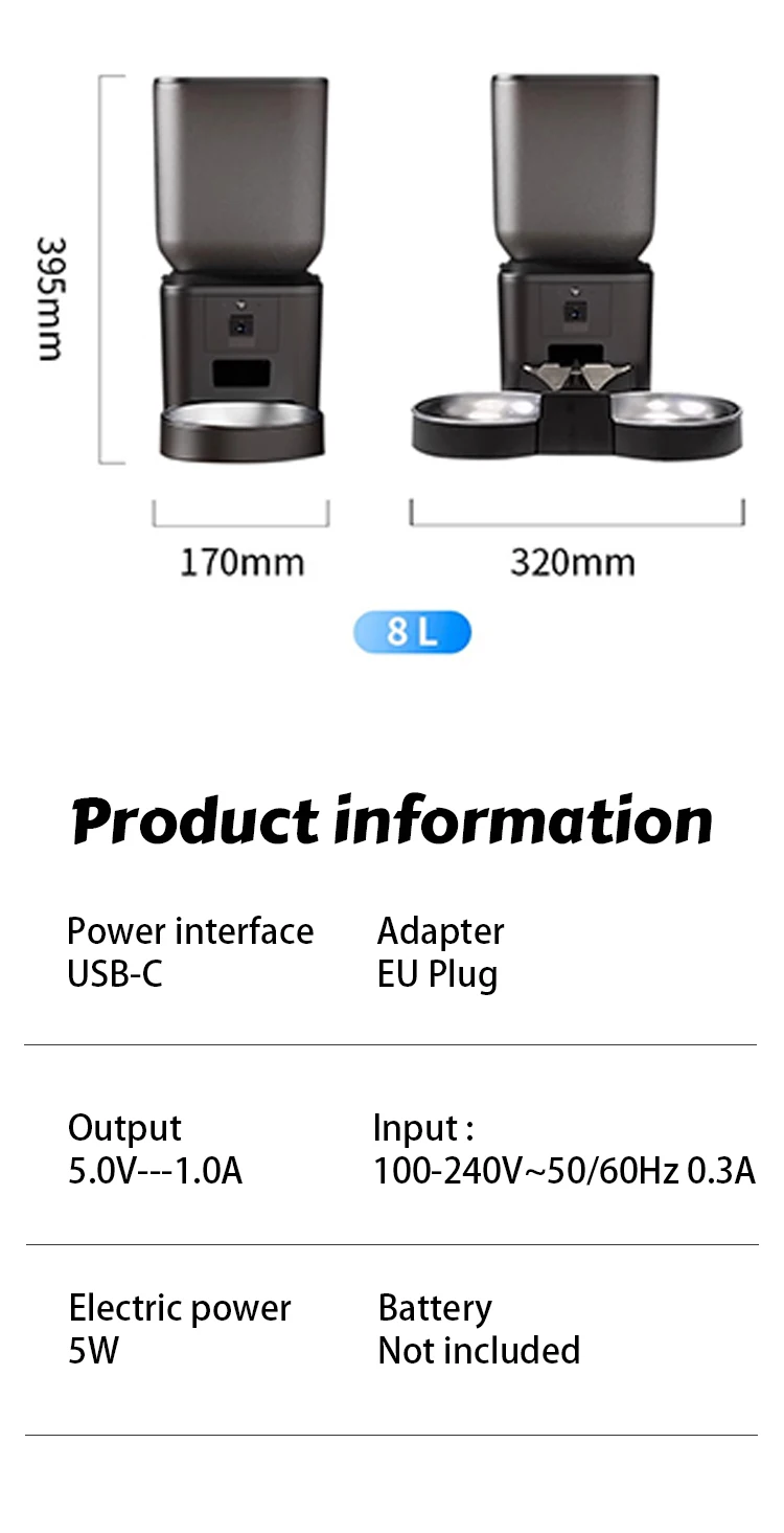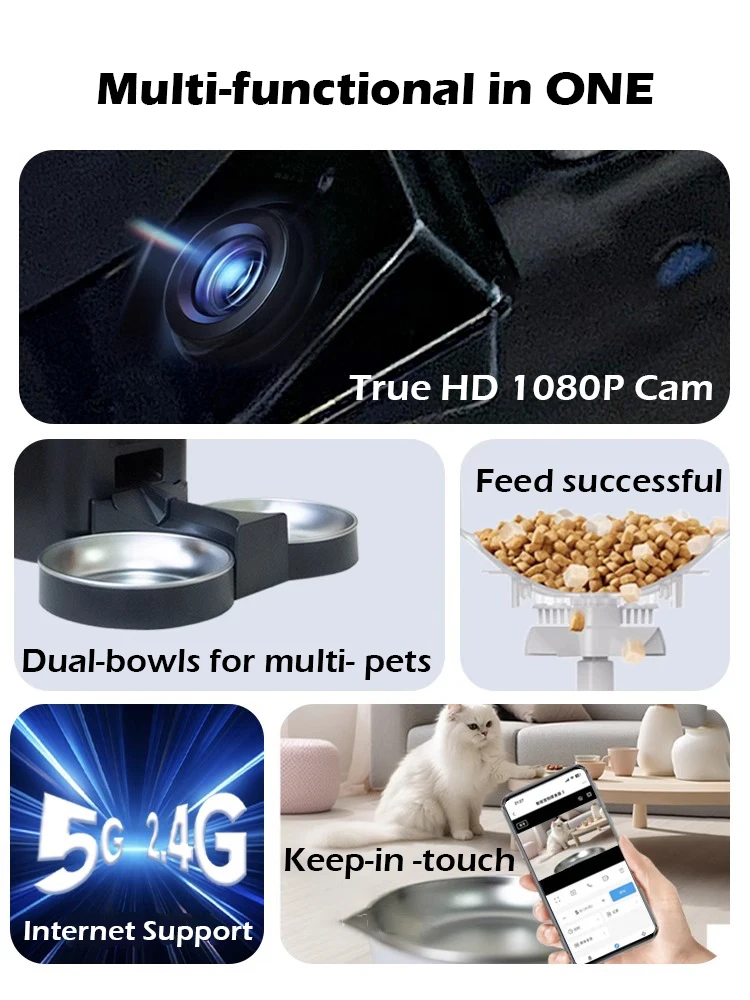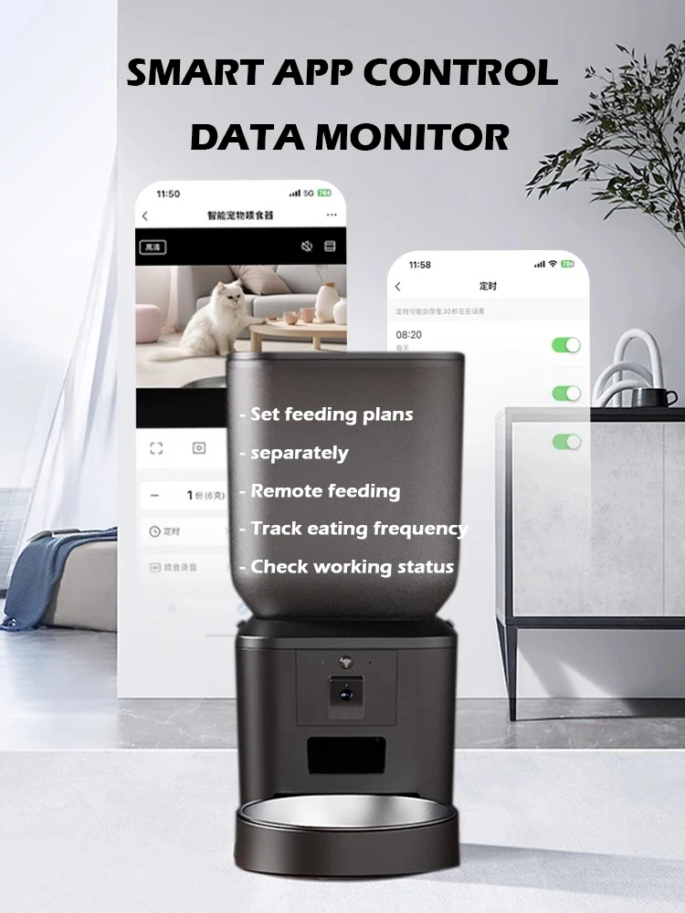 8L WiFi Smart Pet Feeder With 1080P Camera Video 5GWIFI Cat Food Dispenser Pet Smart Voice Recorder Remote Control Auto Feeder For Cat Dog