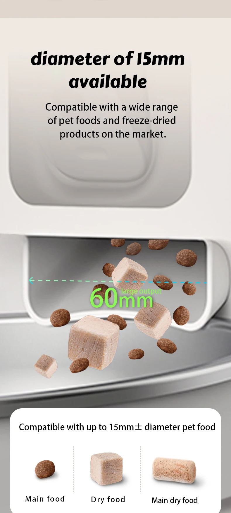 The feeder is timing and dosing, easy to set 1-6 meals, each meal portion is 1-50, just to meet your furry pet unique tastes and needs, so they can enjoy every moment of their meal time.