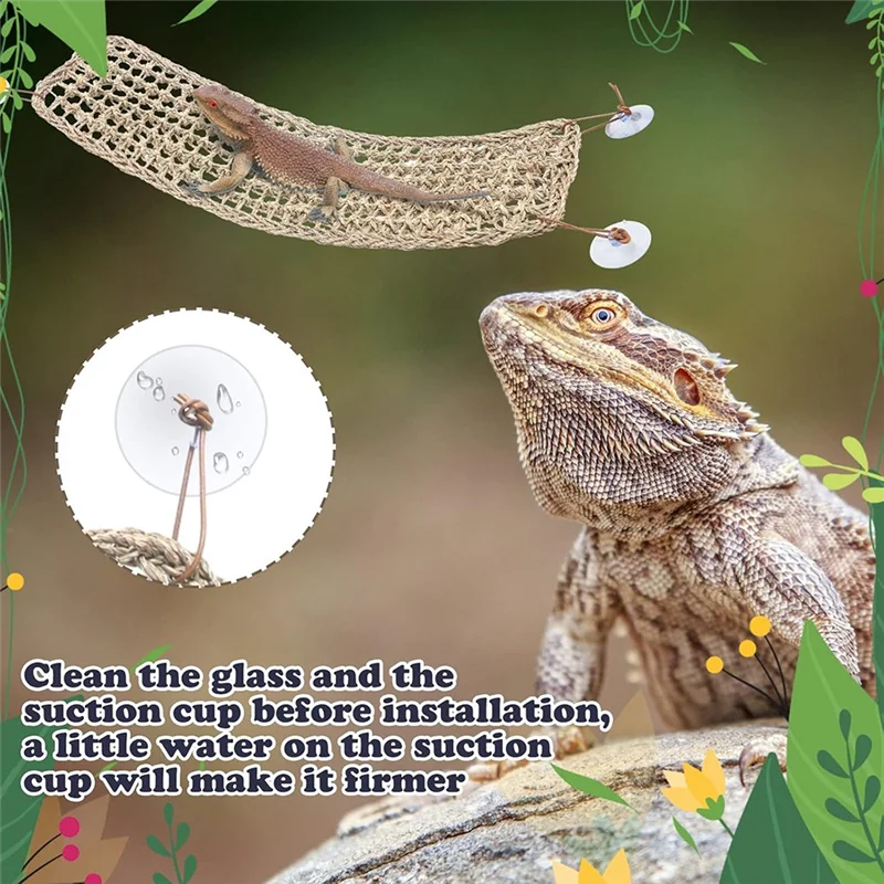 Easy to Adjust: you can easily adjust the height of the lizard hammock through moving the suction cups; And the hammock is soft but sturdy, comfortable for reptiles to lay, a good addition to reptile terrarium