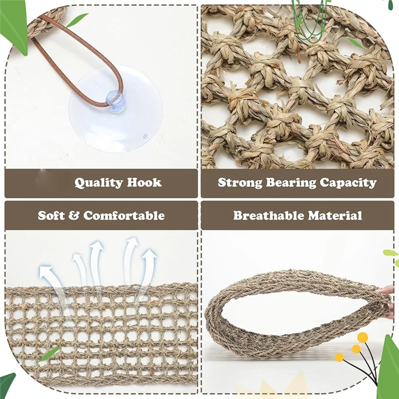 Woven Material: the reptile hammock is hand woven by grass strips, which is soft but sturdy, making it easier for your reptiles to climb; What’s more, it allows your pets to adjust the temperature by coming in close to or away from the light while leaning, and they will choose the most comfortable height