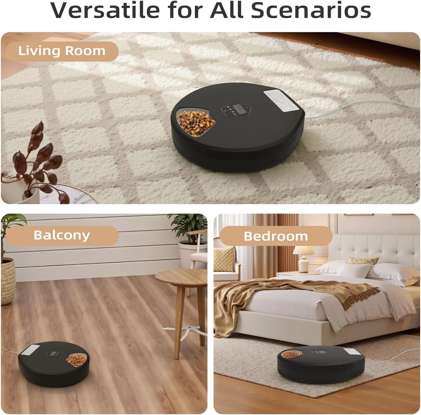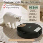 【Smart Timed Feeding】 Programmable timer ensures your pet eats on schedule, even when you’re away. Supports both wet and dry food, helping you manage your pet’s diet effortlessly. No more overfeeding or missed meals!