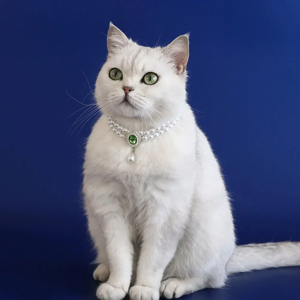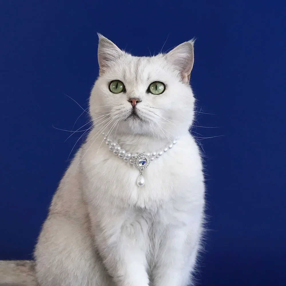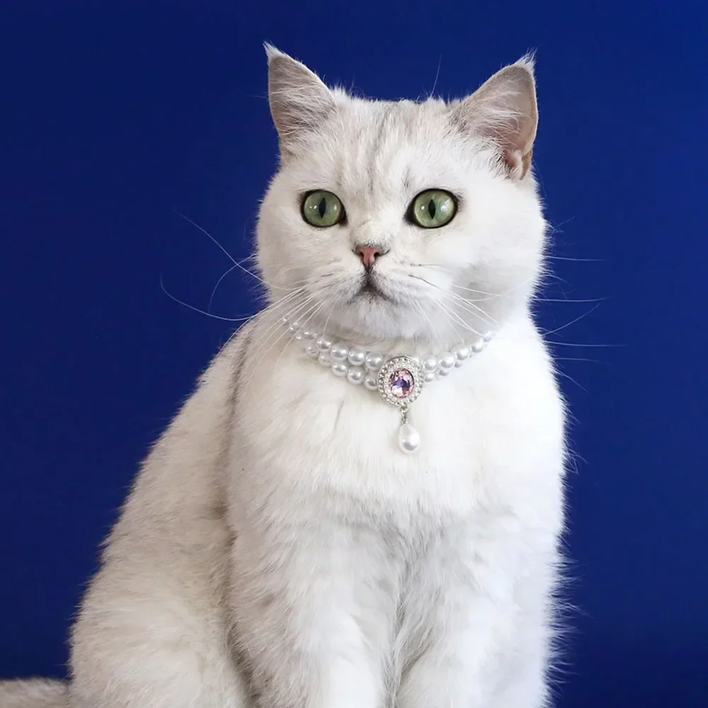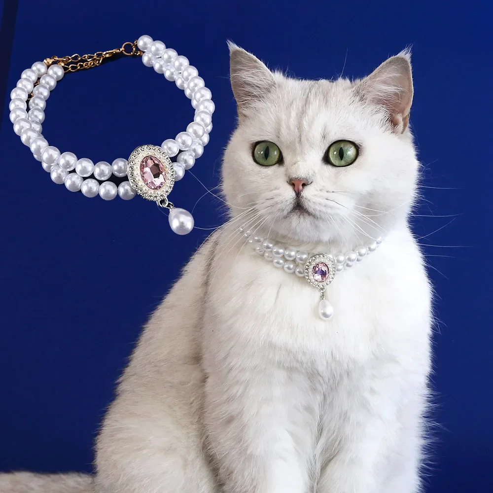 Cat Pearl Collar with Heart Pendant Cute Pearl Pet Necklace Adjustable Wedding Party Small Dogs Jewelry Accessories for Kitten