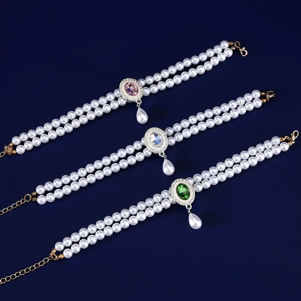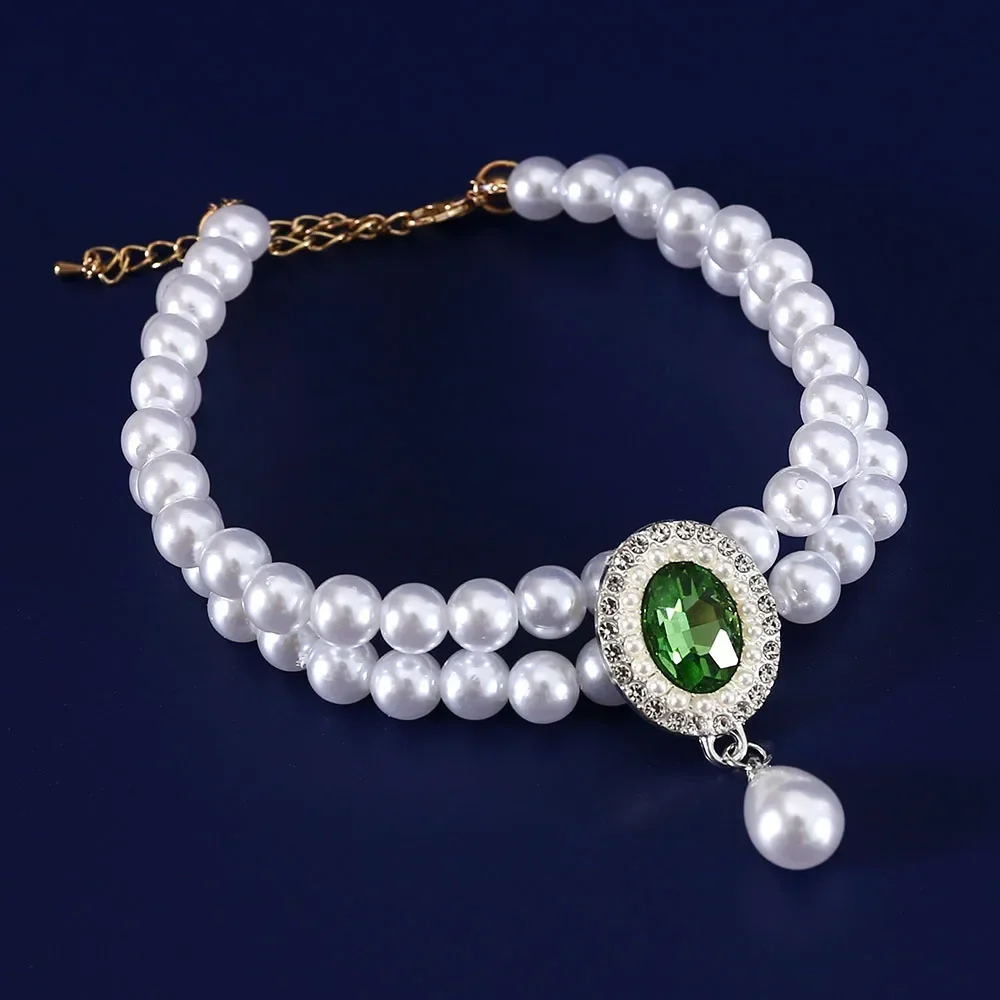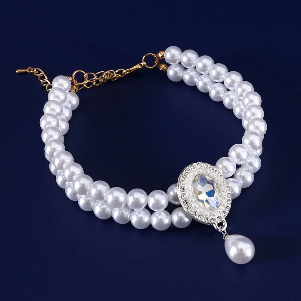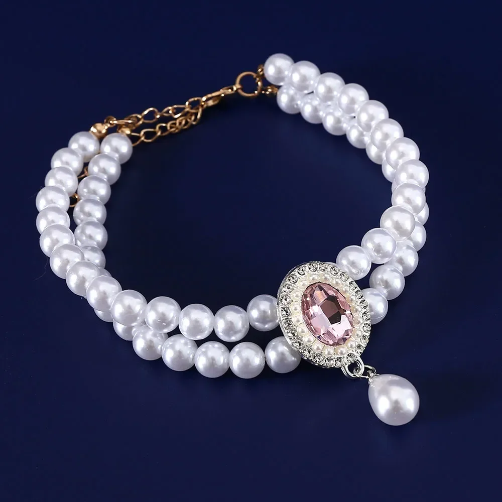 Cat Pearl Collar with Heart Pendant Cute Pearl Pet Necklace Adjustable Wedding Party Small Dogs Jewelry Accessories for Kitten