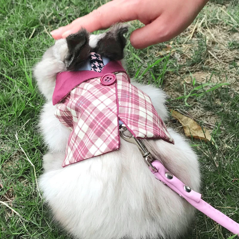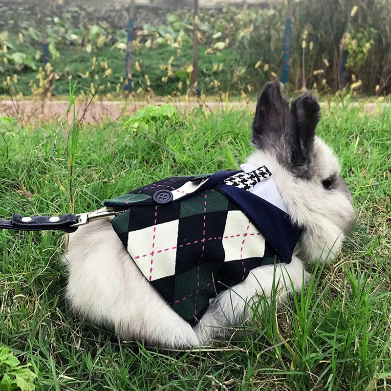 Cute Bunny Guinea Pig Costume for Small Animal Dwarf Rabbit Chinchillas School Uniform Clothes with Harness mascotas Accessories