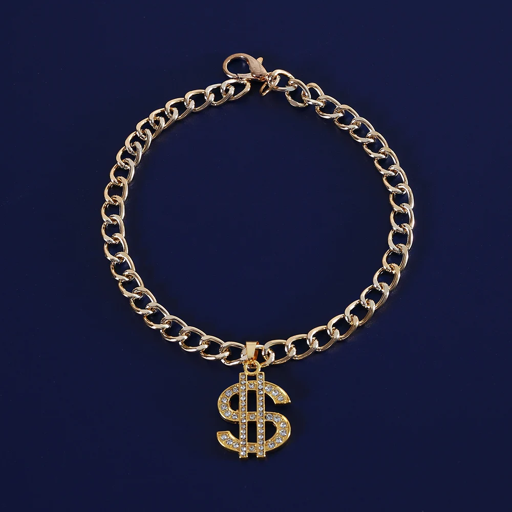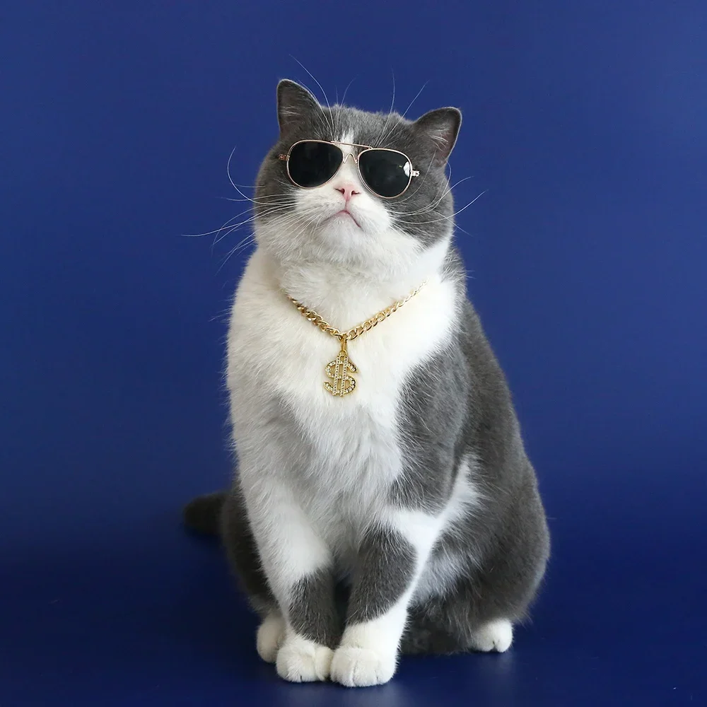 Golden Dollar Chihuahua Dog Accessories for Cat Neck Wear Fancy Zircon Pet Necklace Adjustable Cosplay Small Medium Puppy Collar