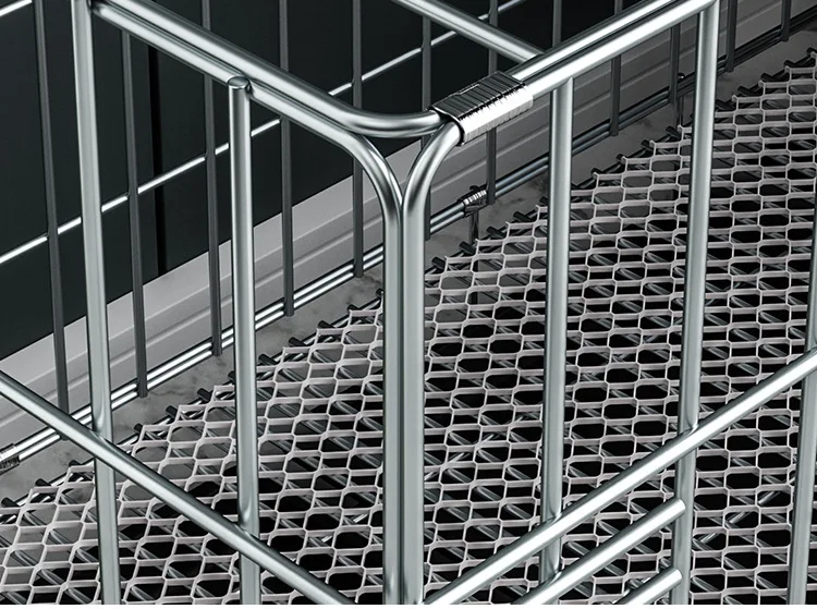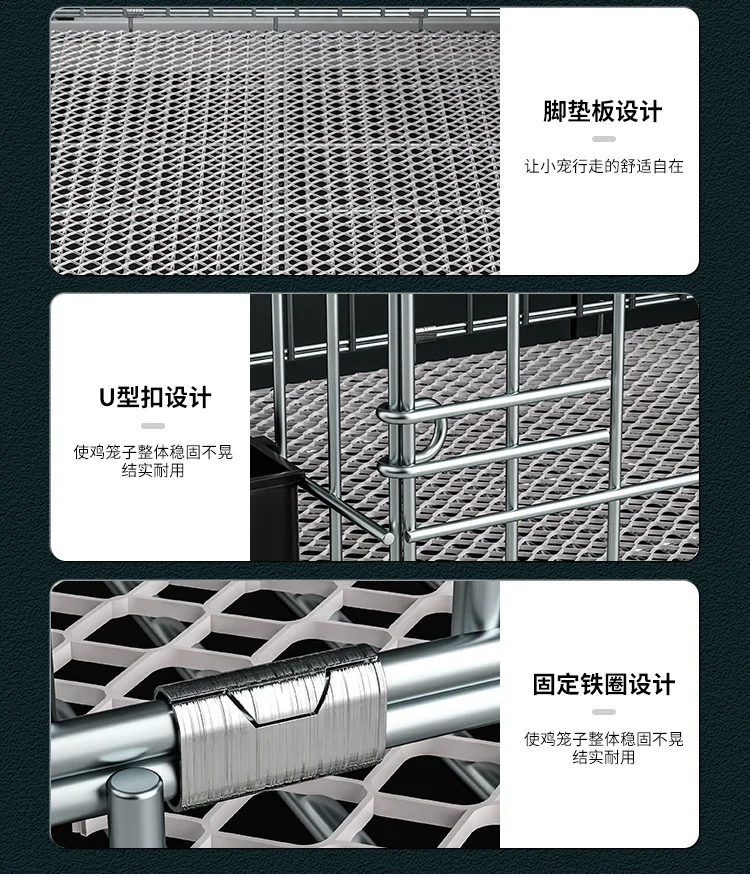 There is a crossbeam at the bottom to reinforce the cage, enhancing the overall stability and load-bearing capacity of the cage, making it stable and durable.