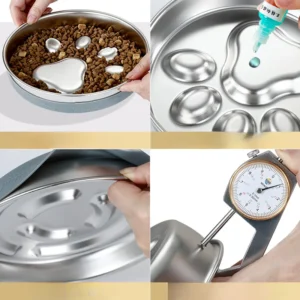 Durable porcelain made from high-quality clay, fired at high temperatures, resulting in delicate and easy-to-clean porcelain. The bottom is left unglazed for anti-slip purposes. The bowl has a capacity of approximately 250g for food and 200ml for water. Its slow food circle design helps slow down eating speed, scientifically improving eating habits, extending meal times, reducing food intake, addressing obesity at its root, and promoting the healthy growth of pets. The package includes 1 pet slow food bowl (color selection available).