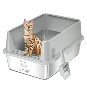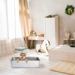 RAISED ENCLOSURE: This litter tray has a raised top and a double barrier design to effectively prevent your cat from bringing out litter and urine when it jumps out, giving you a clean home environment.
