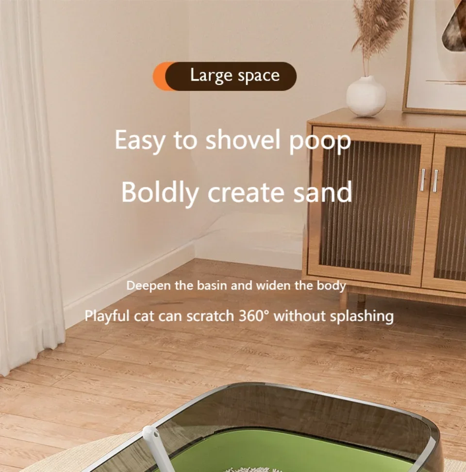 Open Cat Litter Box Thickening Pet Cat Toilet Semi-enclosed High Side Splashproof Pet Bedpans with Litter Scoop Cat Supplies