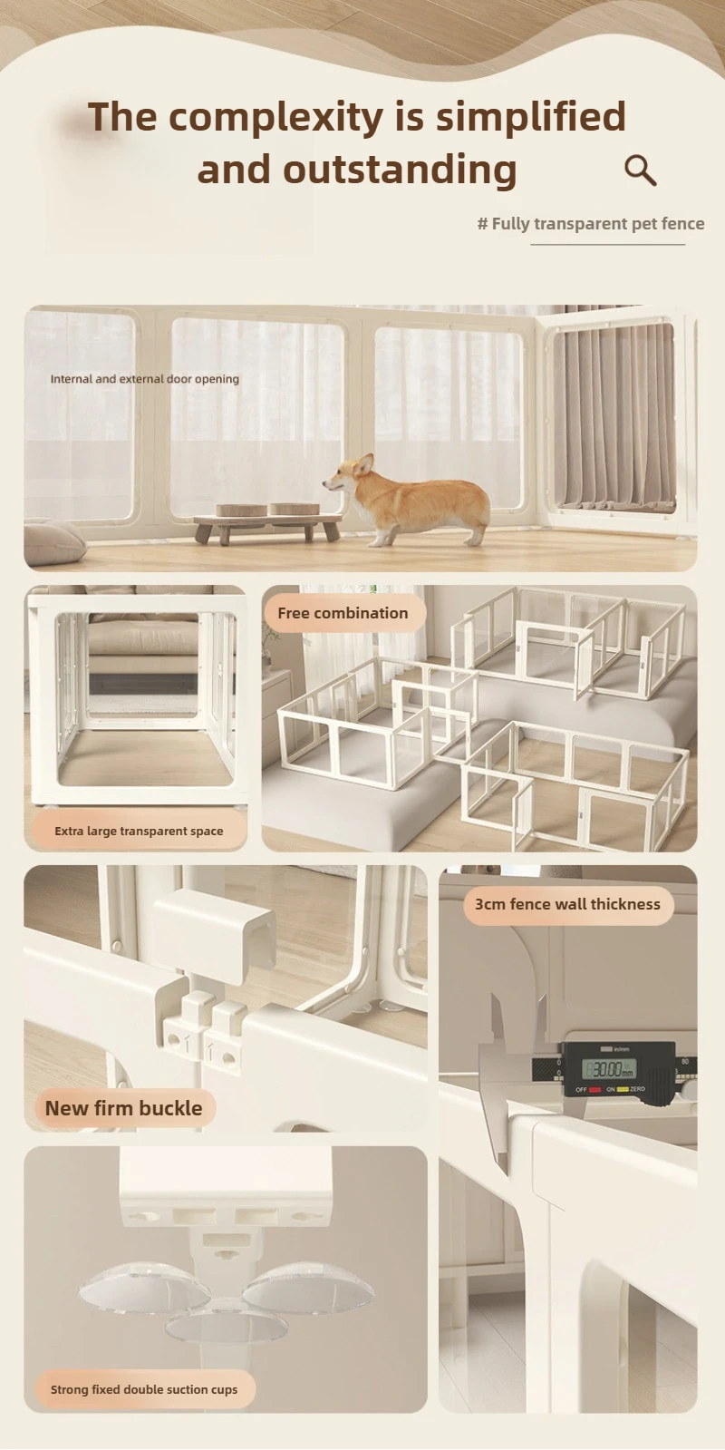 Pet Fence Fully Transparent Houses Acrylic Large Dog Fence Indoor Dog House.Large Space Dog Crate Double Suction Cup Design