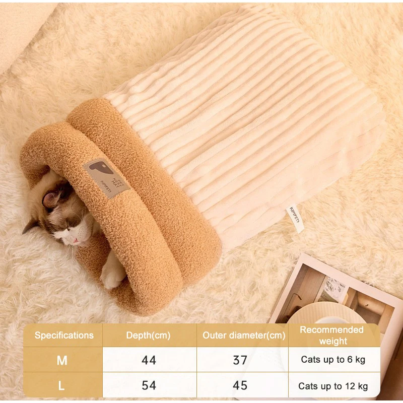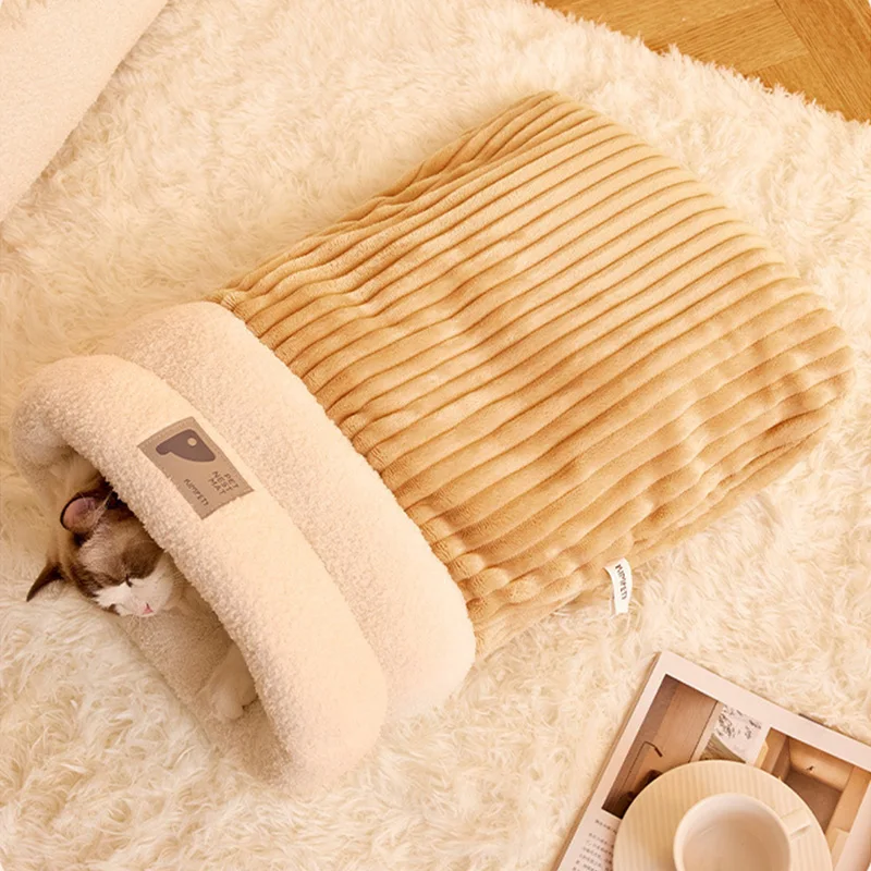 1. Selected materials: Our cat sleeping bag is wrapped in selected materials, bringing unparalleled comfort to your furry friends. The high-end design ensures a safe and warm rest, while the cute appearance will complement any room.
