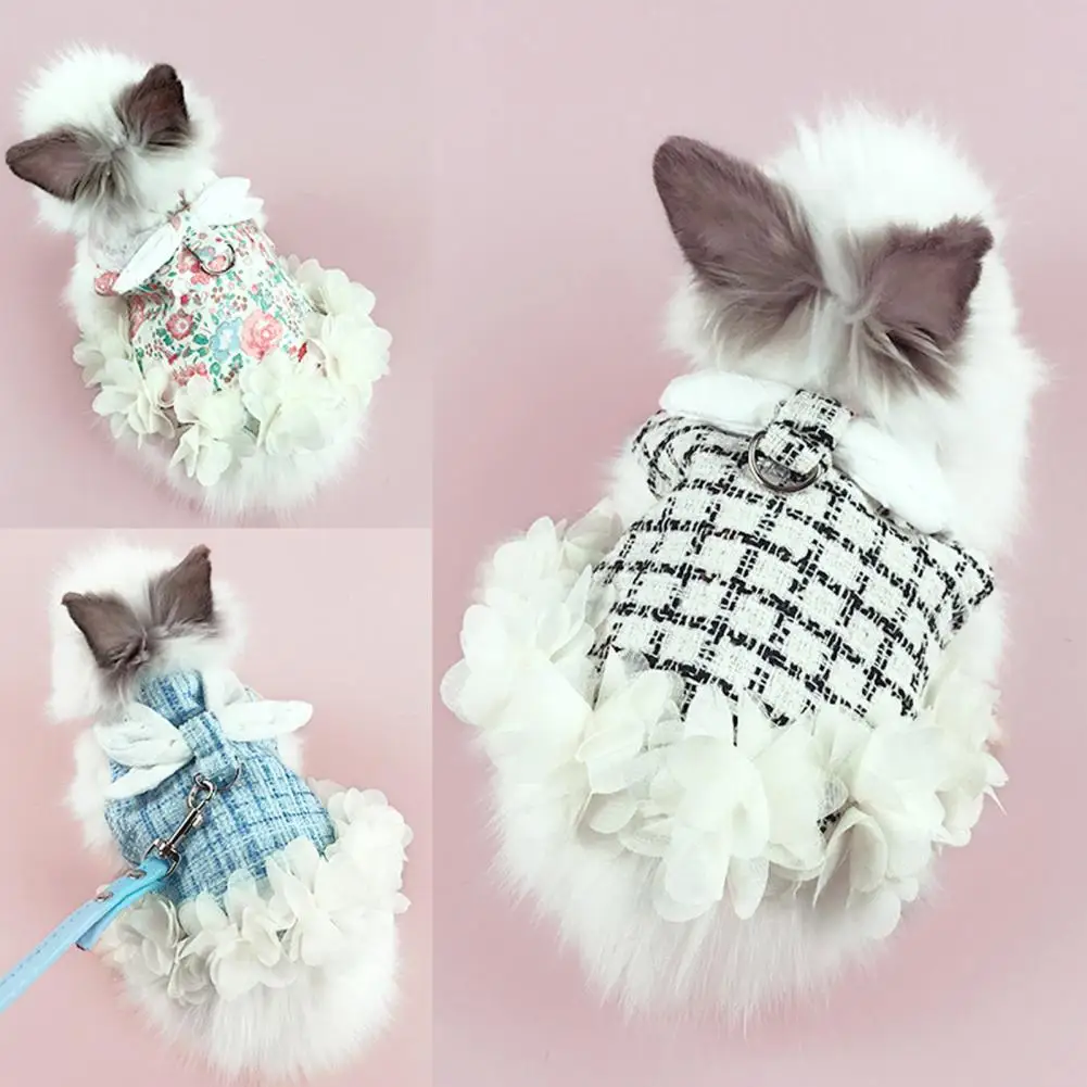 Cozy Small Animal Clothes Unisex Rabbit Harness with Leash Rope Non-sticky Hair Bunny Guinea Pig Costume Outdoor Harness