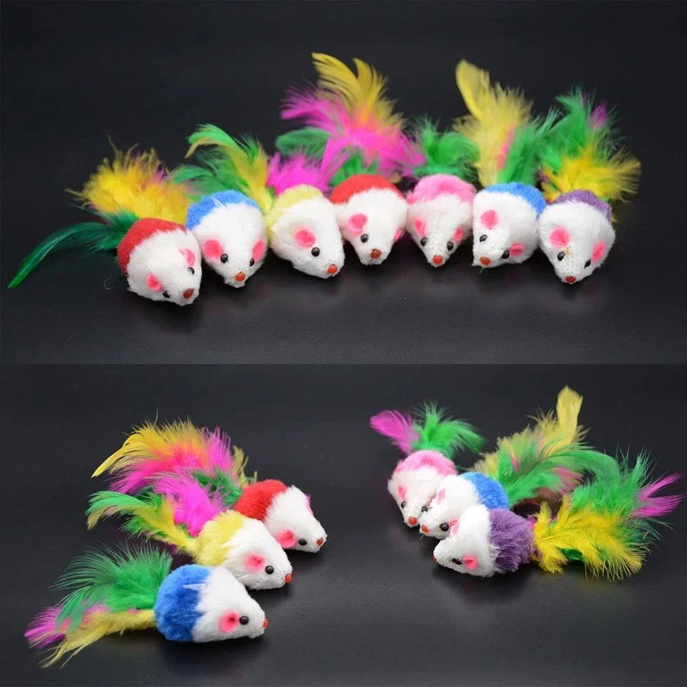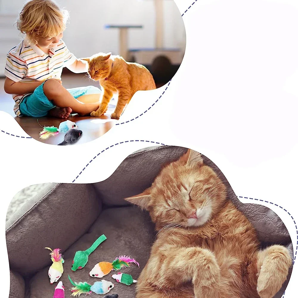The rainbow cat toy has 3 styles in total ,Furry Little Rattle Cat Toys Mice, Plush Body Outside, Have a beads inside and create a rattle sound which can be more interesting and attractive for your cat, 10PCS Assorted Color Mice. We Know That Some Cats Always Like to Collect Toys in Anywhere. Suitable for Cats and Kitten Indoor Play, Interactive Play, Catch Play and Independent Play.