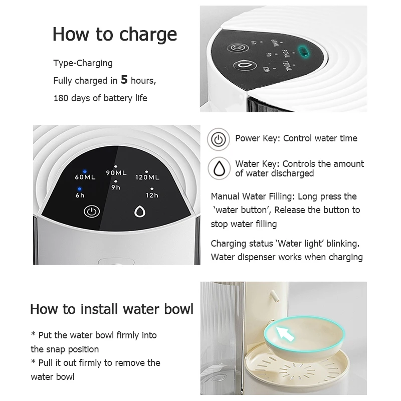 Smart Pet Water Dispenser, Wireless Cat Water Fountain, Dumping Dog Water Dispenser, Rechargeable Automatic Water Feeder
