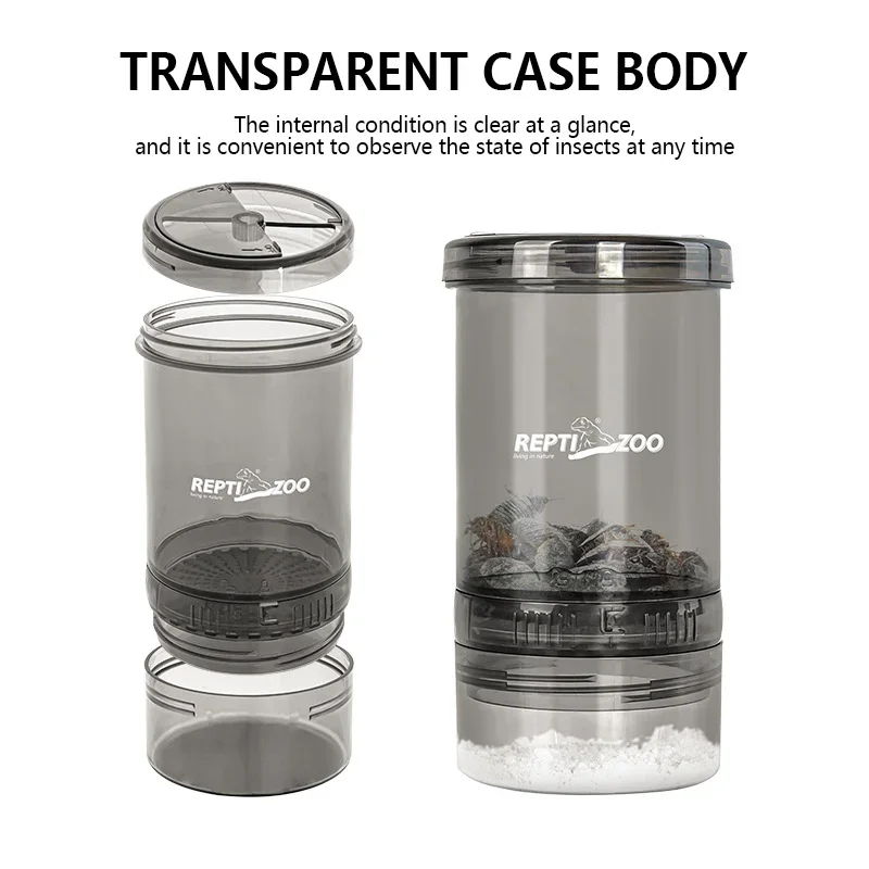 –Mess-Free Mixing: Reduces spillage while allowing uniform coating of insects with calcium powder.