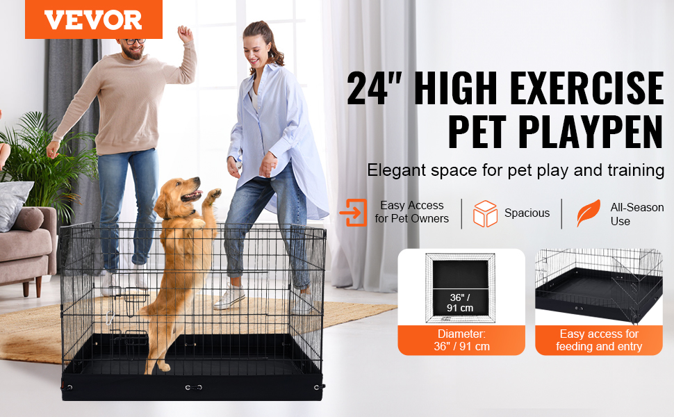 - Ideal for Small and Medium Pets: The 24″ high dog pen is perfect for puppies, small dogs, and other small animals such as Poodles, Bulldogs, Beagles, Cocker Spaniels, cats, rabbits, ducks, and guinea pigs.