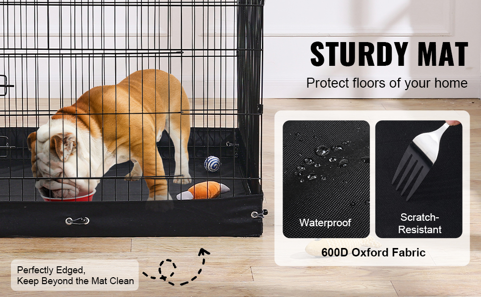 - Waterproof and Durable Ground Mat: Made of 600D heavy-duty Oxford fabric, the ground mat of our exercise pen is waterproof, washable, and tear-resistant, protecting your floors from damage.